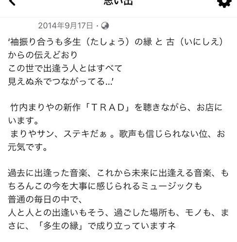 ↑こヤツは、私の7年前のFacebookの投稿記事。 「○年前の本日」、と、懐かしい〝思い出ページ〟に自動で上がって来たりします。 思い返せば今も変わらず好きな、 竹内まりやと、ハンドメイド〜 でも、この7年という歳月に 色々と磨きがかかったのも事実。 (…